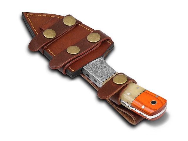 with high-quality Damascus steel, the blade offers exceptional sharpness,
